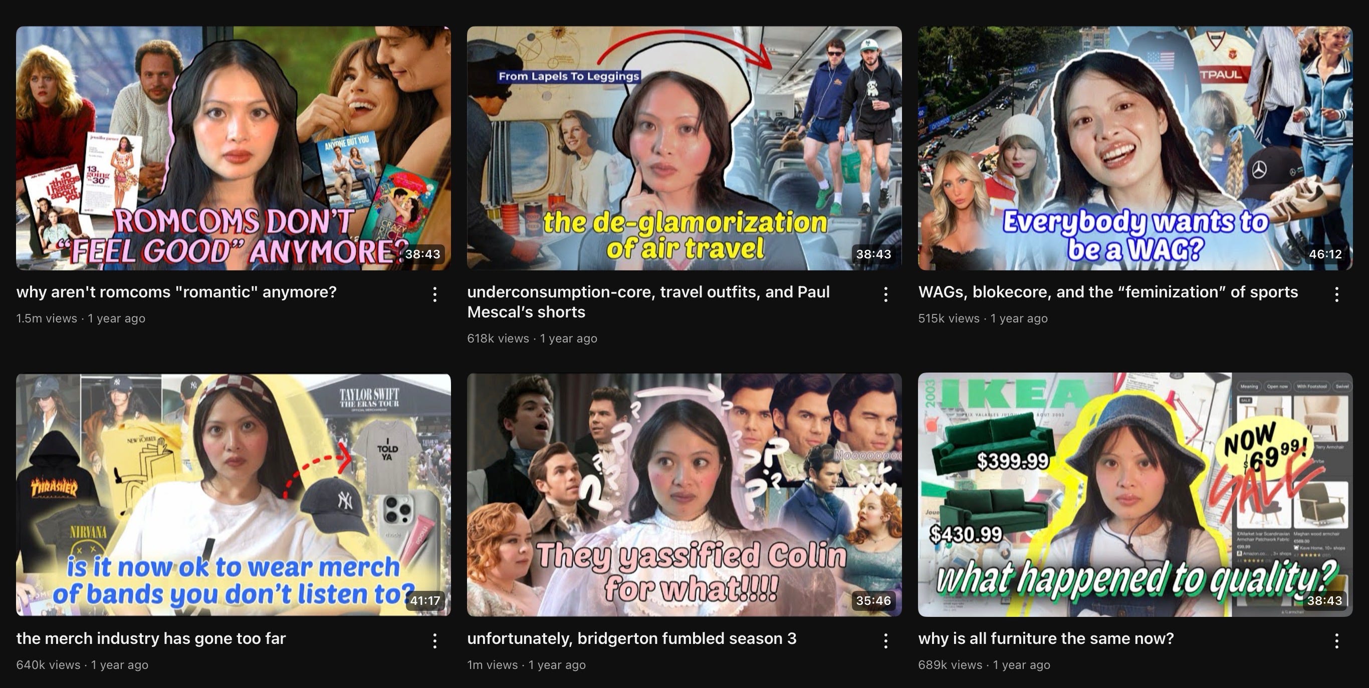 More specifically, I LOVE Mina Le - she has a YouTube channel filled with video essays containing so much information! The topics span across pop culture, fashion, film and more. Even better - she is super engaging and provides so much research based content for her audience: not just waffle but actual backed up facts with literal citations or evidence.